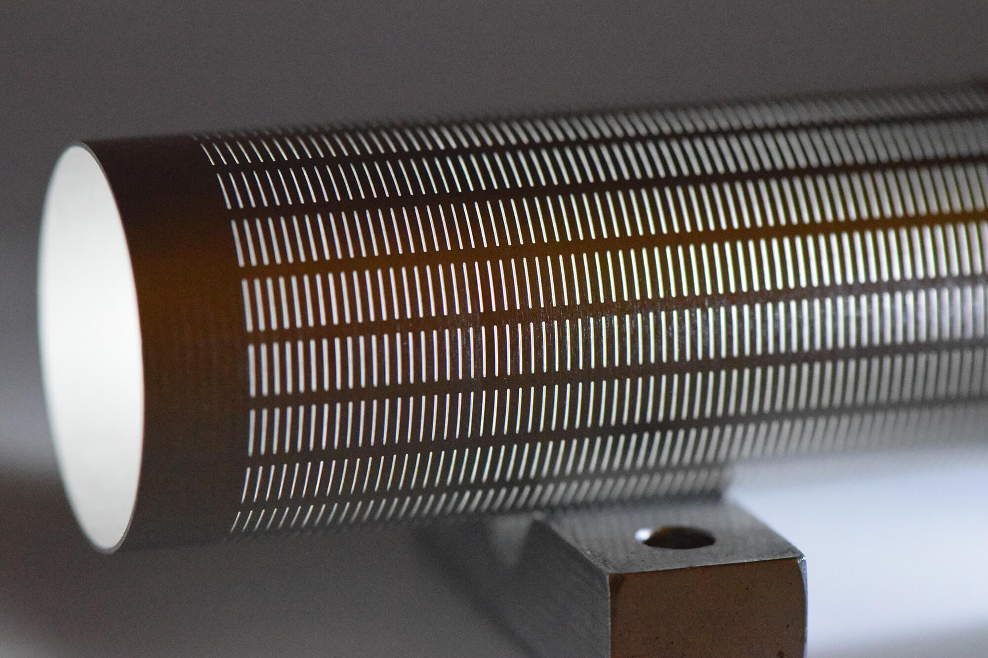 A fully-automated robotic manufacturing cell that produces up to 250 meters of laser-cut filter tube per day.